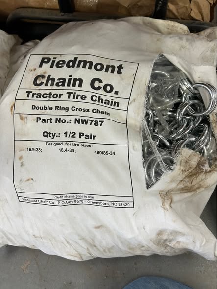 We have a good selection of new tire chains in stock for popular tractor tire sizes and can order any size you need. 16.9-38 / 18.4-34 Double Ring Set $720